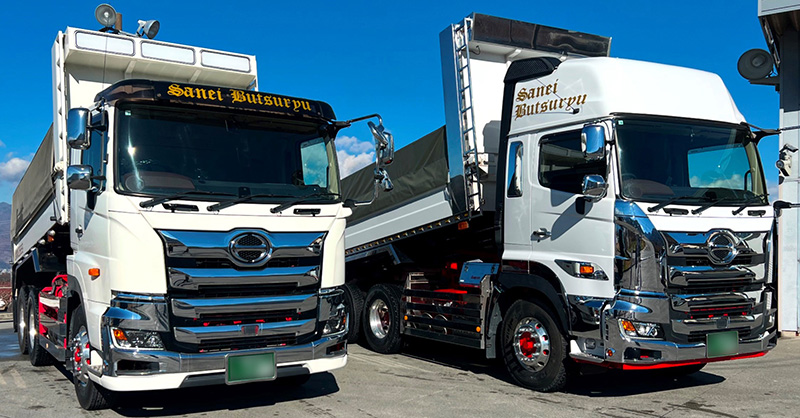 迅速かつ効率的な輸送を実現するため、当社では最新鋭のダンプトラックを保有し、環境に配慮した車両管理を徹底しております。